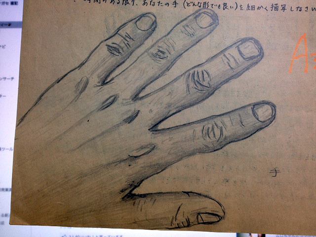 中2ん時、美術のテストで自分の手を描いたテストを母が大事に保管していた物が、